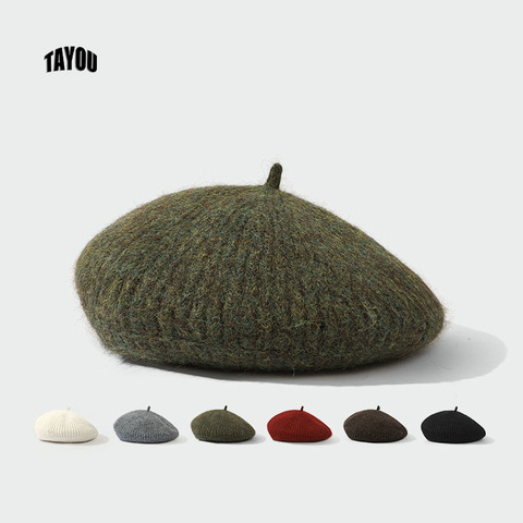 Venta al por mayor Simple mujer boina de punto sombrero moda artista Casual Otoño Invierno cálido gorra Vintage liso Color sólido pintor gorra