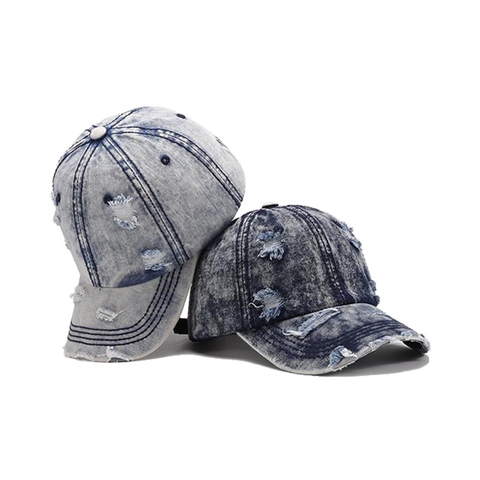 หมวกเบสบอลผ้ายีนส์ฟอกสีวินเทจหมวกกันแดดปรับได้สำหรับชายและหญิงผ้านุ่มใส่สบายออกแบบได้ตามต้องการ