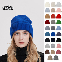 หมวกไหมพรมขนแกะยูนิเซ็กส์หมวกถักสีล้วนสำหรับฤดูใบไม้ร่วงฤดูหนาว